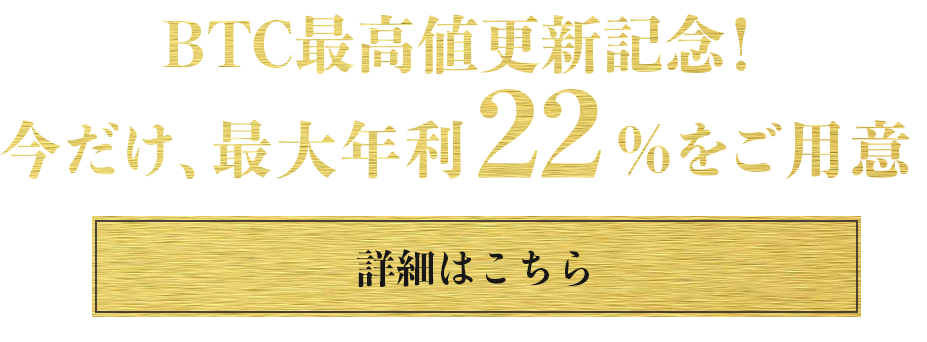 お手持ちのビットコインをお預けいただく事で高利回りの運用が実現します。
