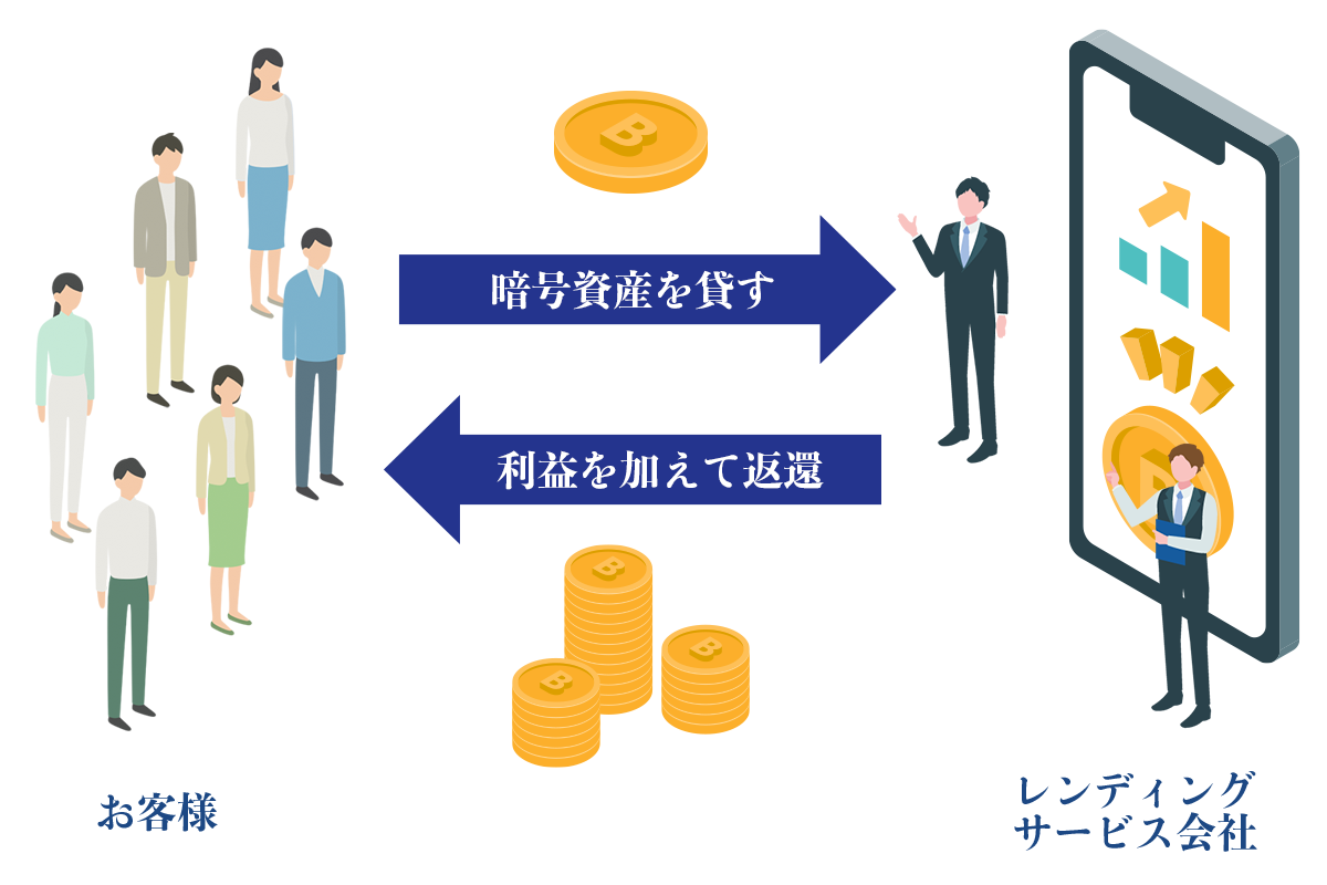 お客様が保有する暗号資産(仮想通貨)を一定の期間、レンディングサービス会社に貸し出すことで、